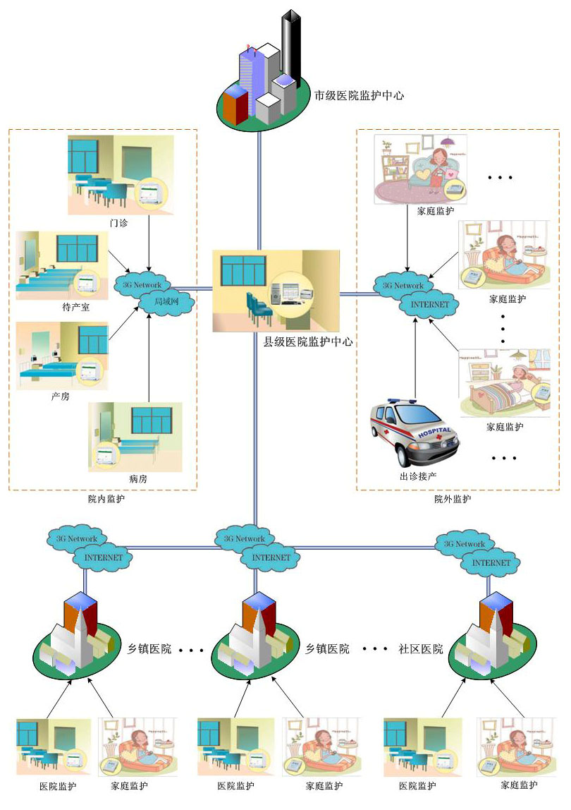 以縣級(jí)醫(yī)院為龍頭,將全縣多家基層醫(yī)院連接成覆蓋全縣的無(wú)線遠(yuǎn)程母嬰中央監(jiān)護(hù)網(wǎng)絡(luò)系統(tǒng),多家基層醫(yī)院對(duì)孕婦的信息同時(shí)傳輸?shù)娇h級(jí)醫(yī)院婦產(chǎn)科,由縣級(jí)醫(yī)院婦產(chǎn)科專(zhuān)家進(jìn)行遠(yuǎn)程分析和診斷,指導(dǎo)基層醫(yī)院醫(yī)護(hù)人員進(jìn)行分析和處理,提高了基層醫(yī)院婦產(chǎn)科醫(yī)護(hù)人員的業(yè)務(wù)素質(zhì)和診療水平,避免醫(yī)療事故及糾紛的發(fā)生;對(duì)于異常情況的孕婦及胎兒,及時(shí)轉(zhuǎn)院到縣級(jí)醫(yī)院婦產(chǎn)科,為孕婦及胎兒的急救爭(zhēng)取了寶貴時(shí)間。